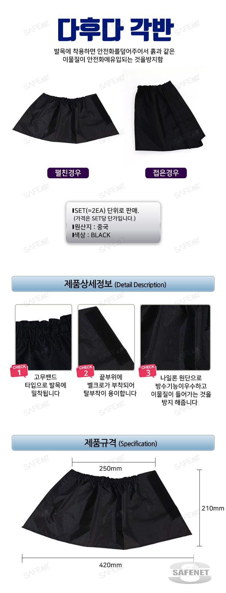 * FREE SIZE * 재봉이 튼튼한 방수원단 사용 * 300 SET / BOX 포장 * 벨크로그 부착되어 있어서 탈부착이 용이함