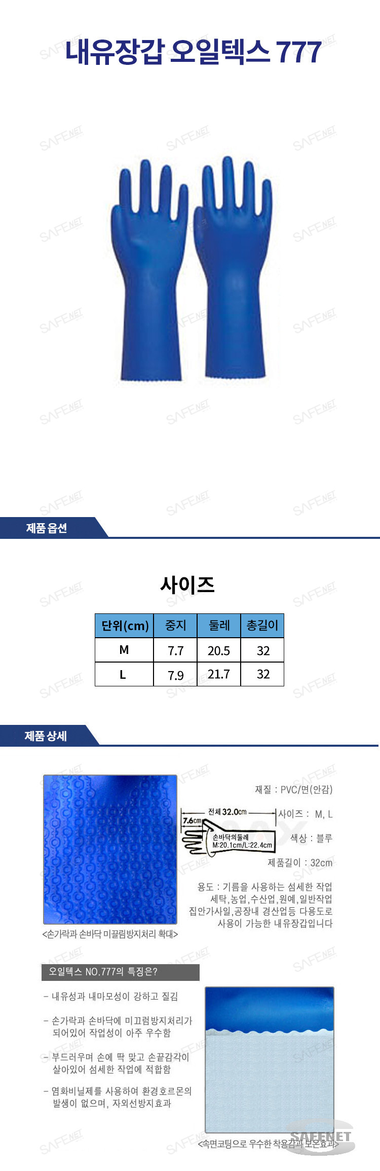 규격 PVC재질+면안감 / 섬세한기름작업,일반작업 등 / 미끌림방지처리