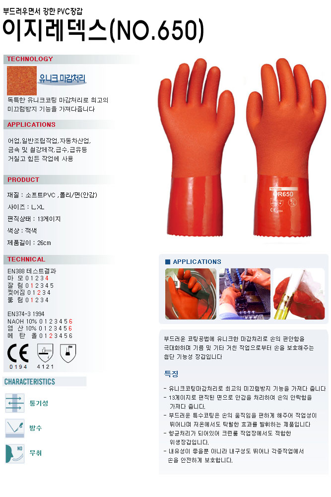 내화학장갑 이지레덱스 NO650
