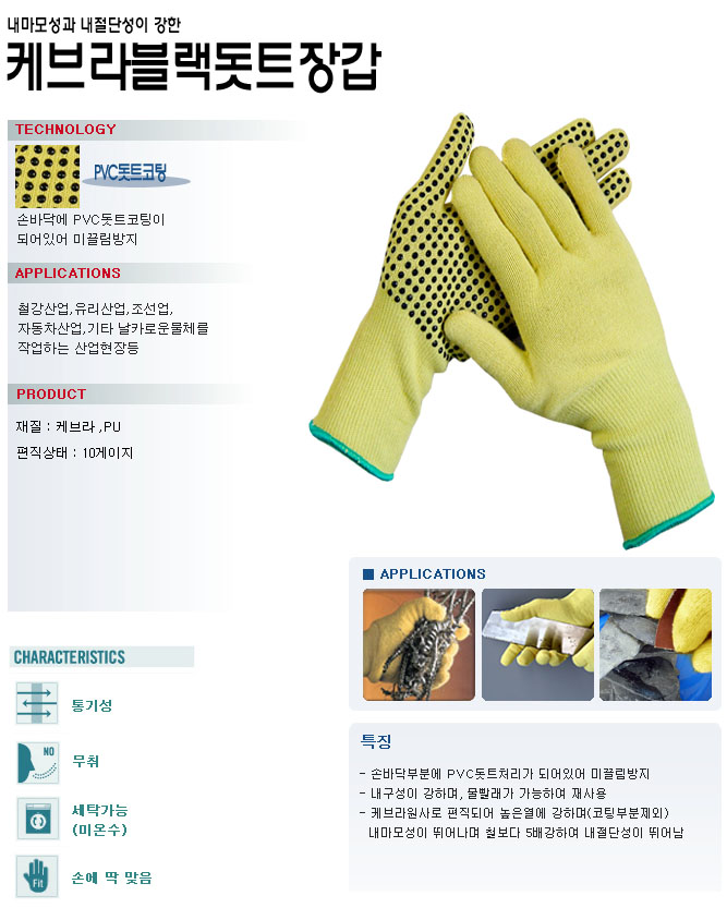 잘림방지장갑 케브라블랙돗트