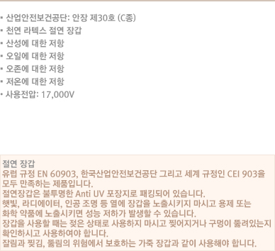 규격 Class 2 / 최대사용전압 17000V / CE인증 / 라텍스재질