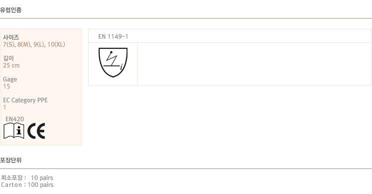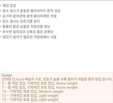 규격 탄소원사가 혼합된 폴리아미드편직장갑