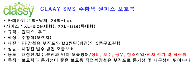 모델명 classy 원피스 SMS 보호복