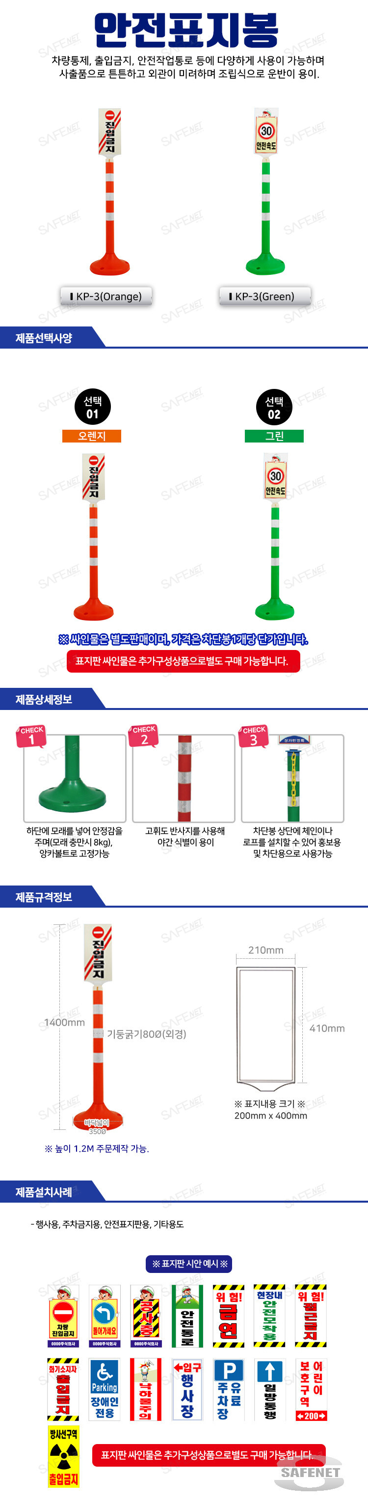 - 행사용, 주차금지용, 안전표지판용, 기타용도