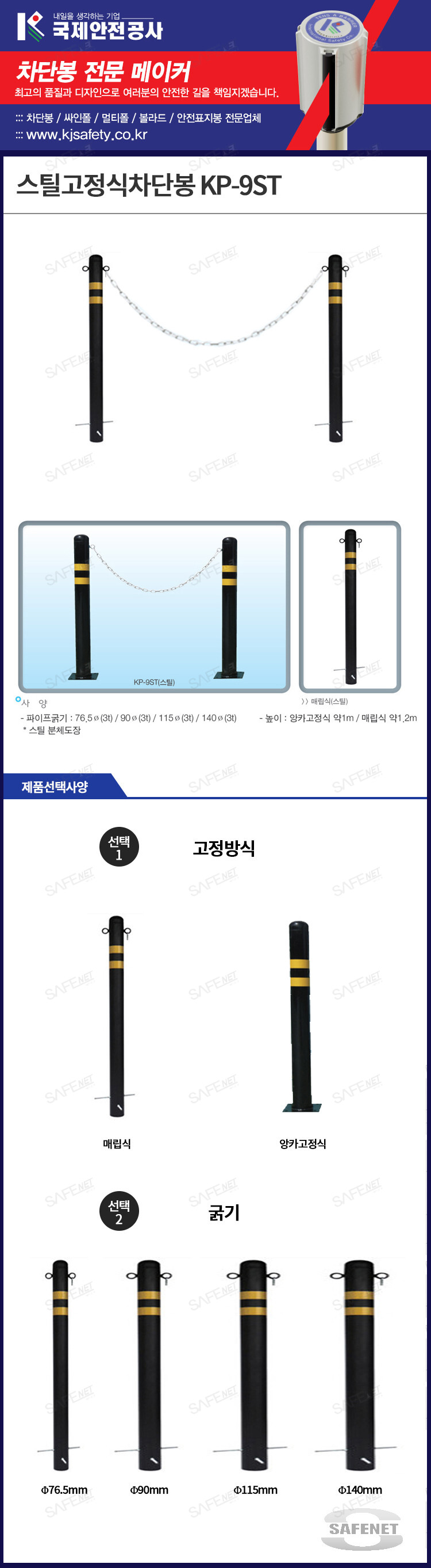 스틸고정식차단봉 KP-9ST