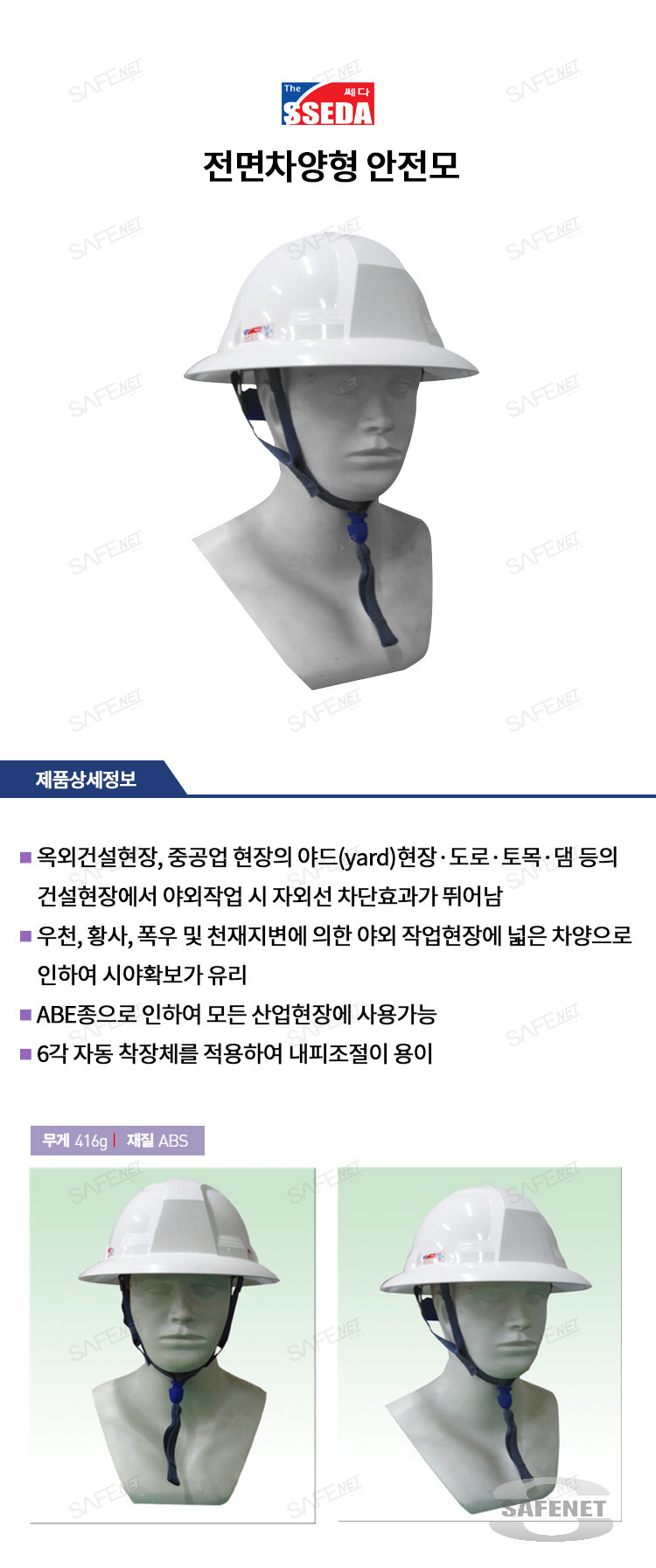 규격 ABS 재질 / ABE등급 / 백색 / 416g / 야외작업시 자외선 차단효과 우수