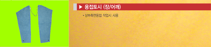 업체 > 안전용품 > 용접-크린룸-근골격계 > 용접장갑-용접피복 > 토시-앞치마-각반-두건(43)