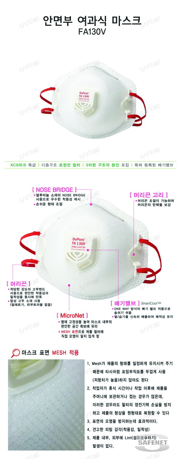 듀폰 안면부여과식 특급 방진마스크 FA130V
