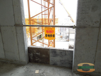 1. 발코나창,E/V,등 개구부에 무지주방식으로 수평대만을 활용하여 설치.