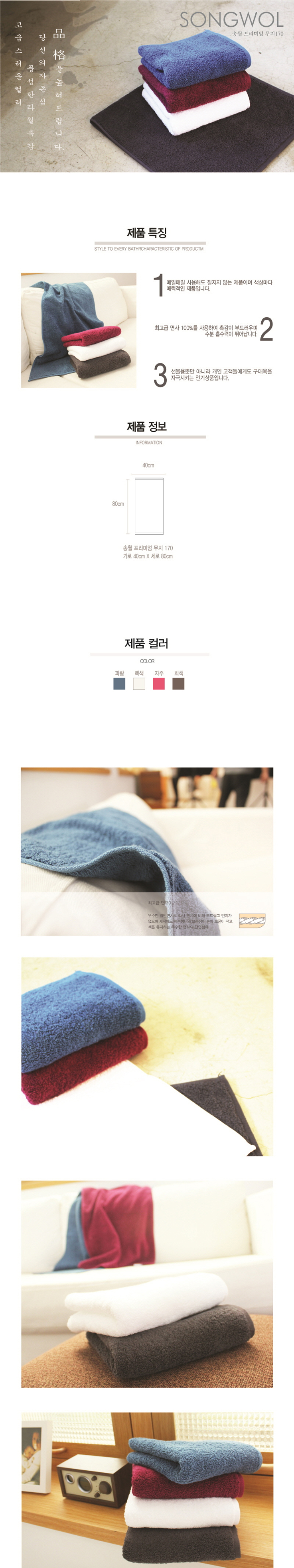 송월타월 프리미엄무지 40 (170g)
