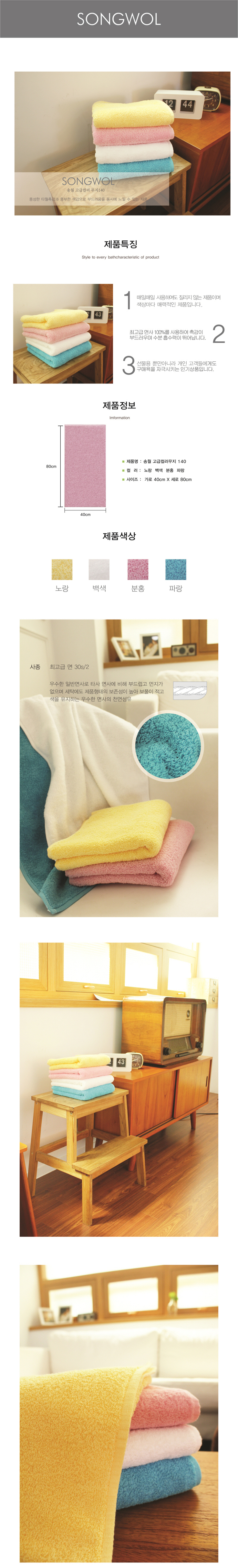 송월타월 고급컬러무지 40 (150g)