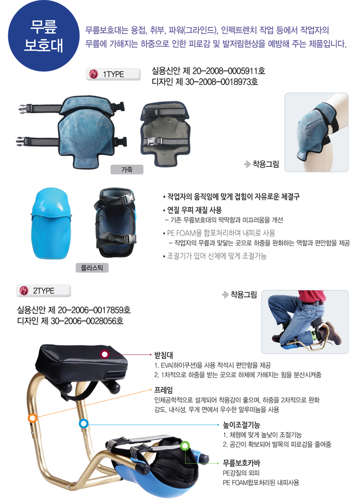 무릎보호대는 용접, 취부, 파워(그라인드), 인펙트렌치 작업 등에서 작업자의
