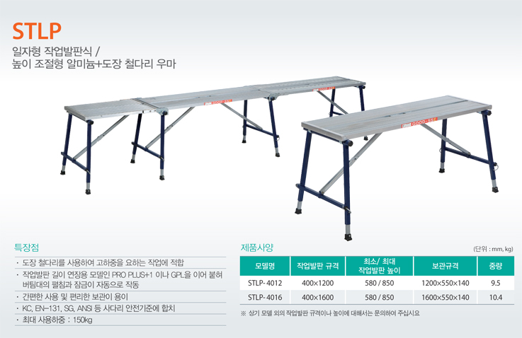 - KC, EN-131, SG, ANSI 등 사다리 안전기준에 합치