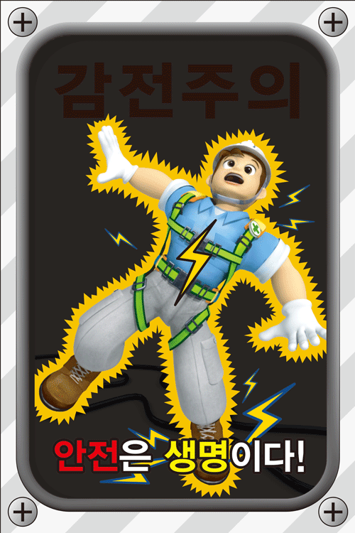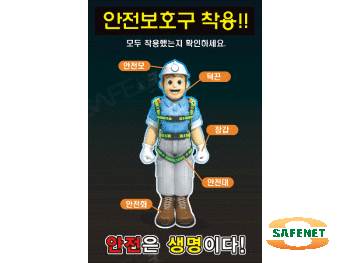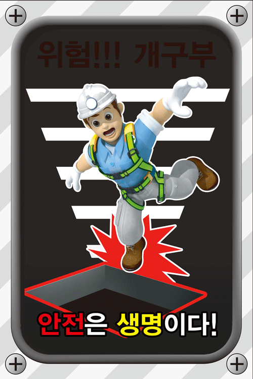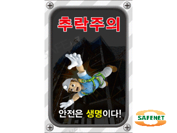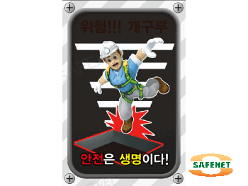 각종 안전계몽 표지판(추락주의,감전주의,낙하물주의 개구부조심)등 안전사고 위험이 있는 작업구간에 높은 시인성의