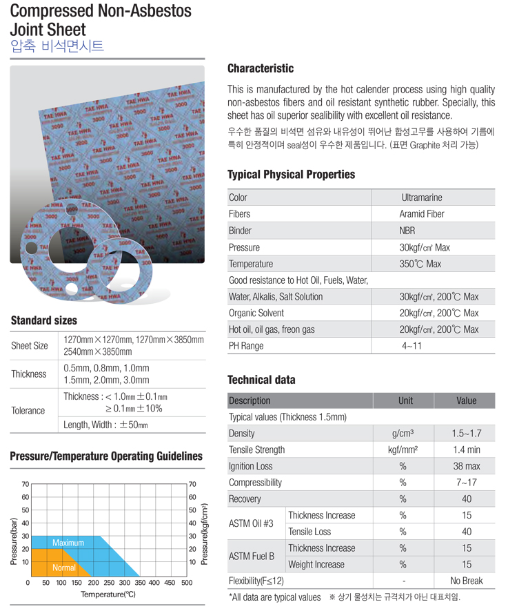 압축 비석면시트/가스켓 TH3000