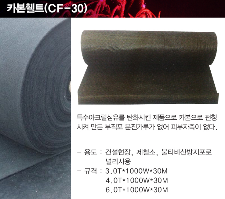 - 용도 : 건설현장, 제철소, 불티비산방지포로 널리사용
