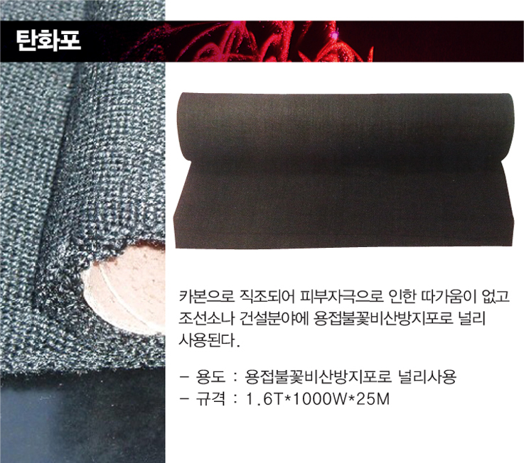 - 용도 : 용접불꽃비산방지포로 널리사용