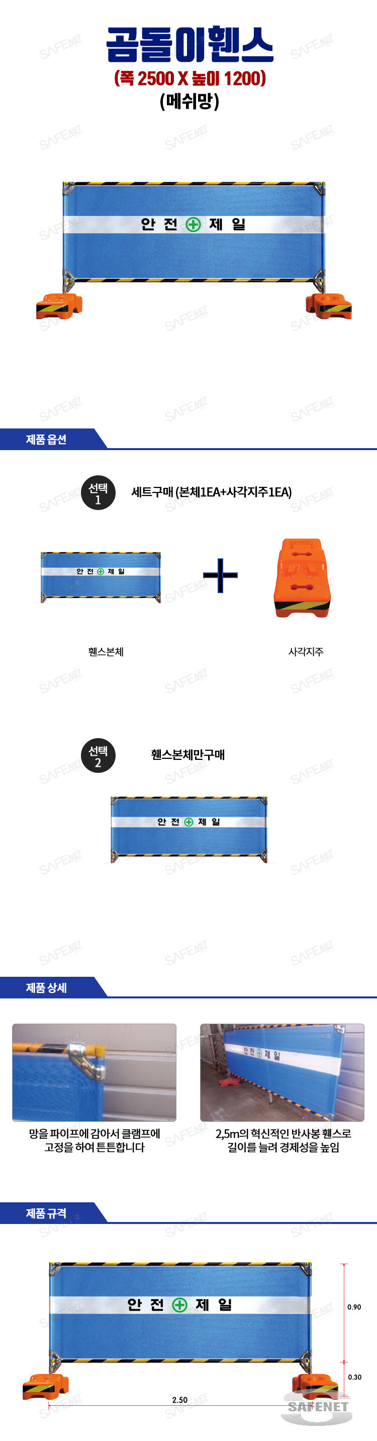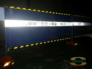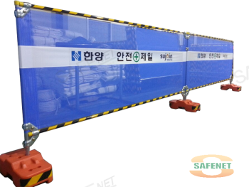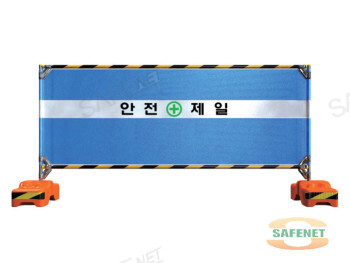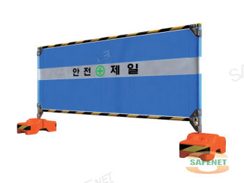 규격 H1200 X W2500mm / 청색메쉬망 / 반사띠 / 안전제일인쇄 / 곰돌이지주(사각시멘지주)