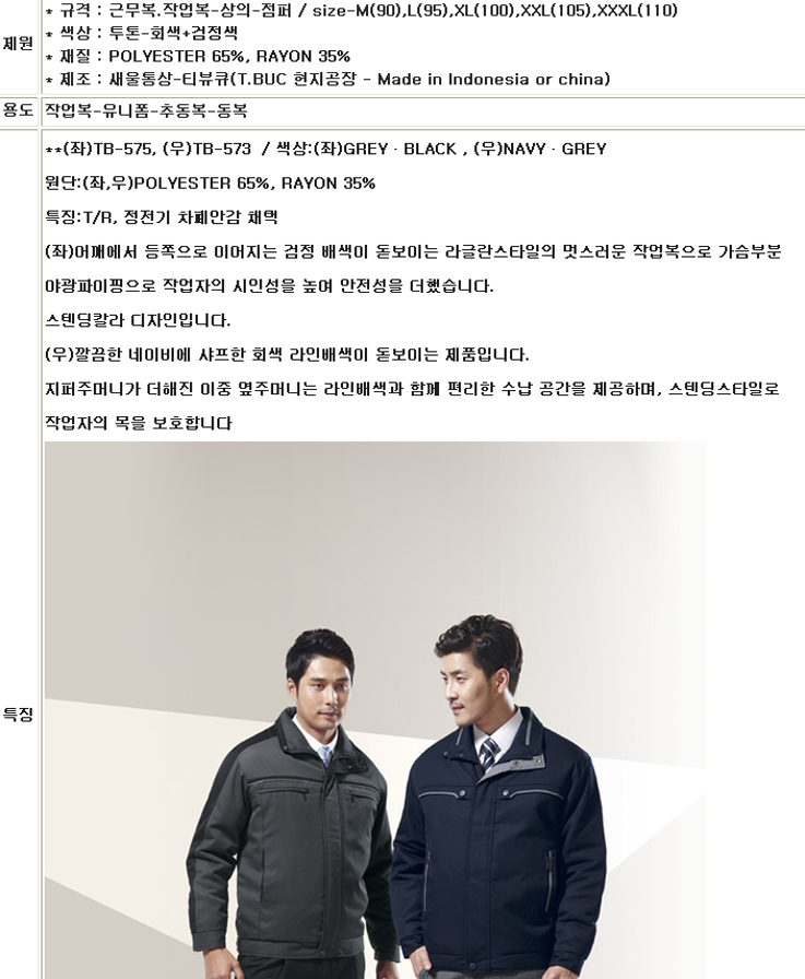 업체 > 안전용품 > 안전의류 > 점퍼-파카 > 추동복(66)