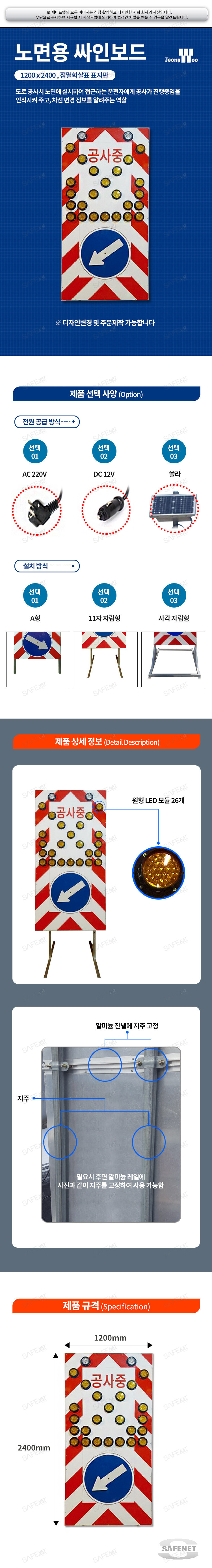 규격 1200 X 2400mm / LED / 좌측,우측, 양방향 유도가능 / 전원방식 및 설치용지주 선택가능