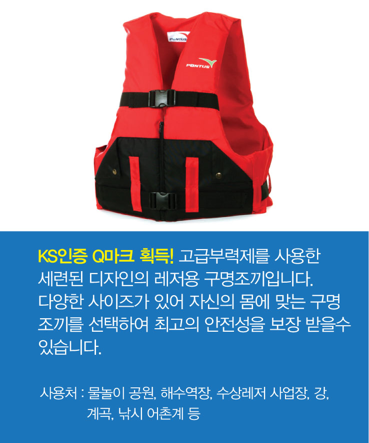 KS인증 Q마크 획득! 고급부력제를 사용한 세련된 디자인의 레저용 구명조끼입니다.
