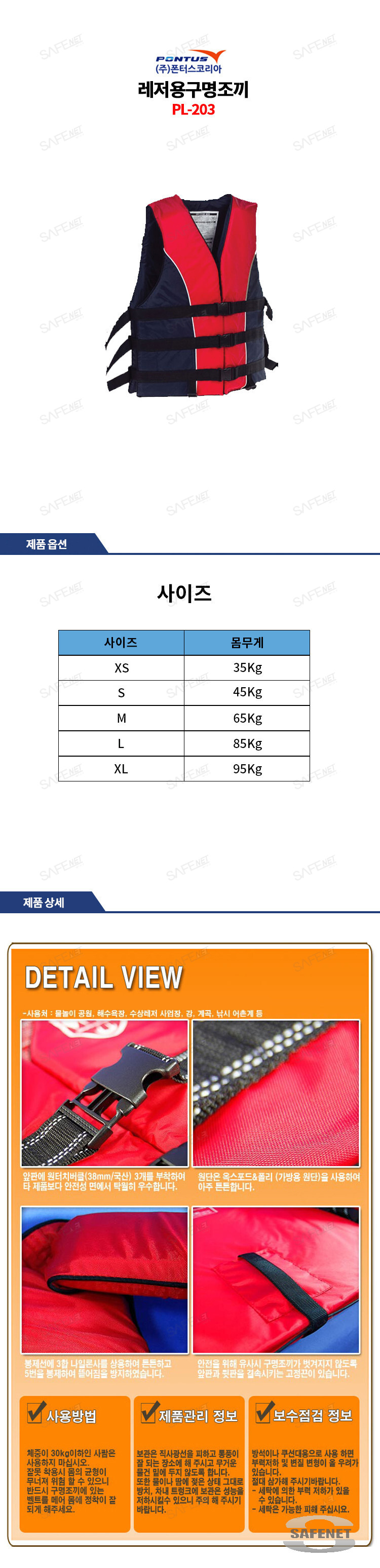 폰터스 레저용구명조끼 PL-203