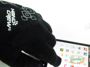 겨울철 스파트폰을 사용할 수 있게 엄지와 검지에 터치폰원단을 사용하여, 장갑을 벗지 않고도 스마트폰을 사용할 수 있으며, 샤무드 덧데기에 실리콘 인쇄를 사용하여 미끄럼 방지를 했습니다.