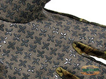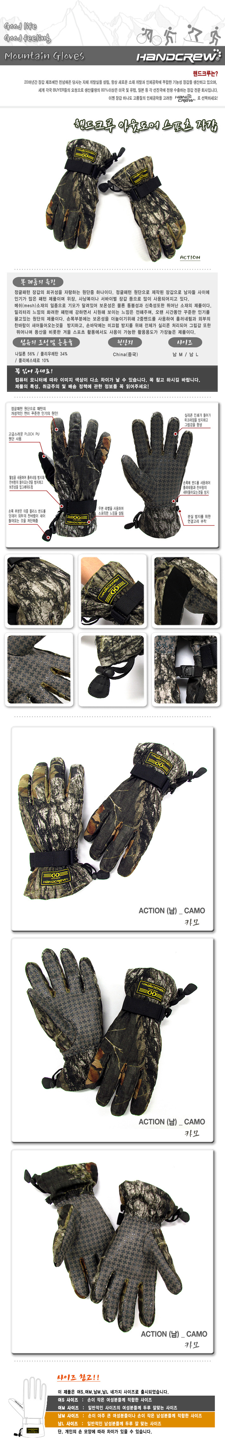 정글패턴 장갑의 희귀성을 자랑하는 원단중 하나이다. 정글패턴 원단으로 제작된 장갑으로 남자들 사이에 인기가 많은 패턴 제품이며 위장, 사냥복이나 서바이벌 장갑 등으로 많이 사용되어지고 있다. 메쉬소재의 일종으로 기모가 달려있어 보온성은 물론 통풍성과 신축성 또한 뛰어난 소재의 제품이다. 밀리터리 느낌의 화려한 패턴에 강하면서 시원해 보이는 느낌을 전해주며, 오랜 시간동안 꾸준한 인기를 끌고있는 원단의 제품이다. 손목부분에는 보온성을 더 높이기 위해 2중밴드를 사용하여 흘러내림과 외부의 찬바람이 새어 들어오는 것을 방지하고, 손바닥에는 미끄럼방지를 위해 전체가 실리콘 처리되어 그립감 또한 뛰어나며 등산을 비롯한 겨울 스포츠 활동에서도 사용이 가능한 활용도가 가장 높은 제품이다.