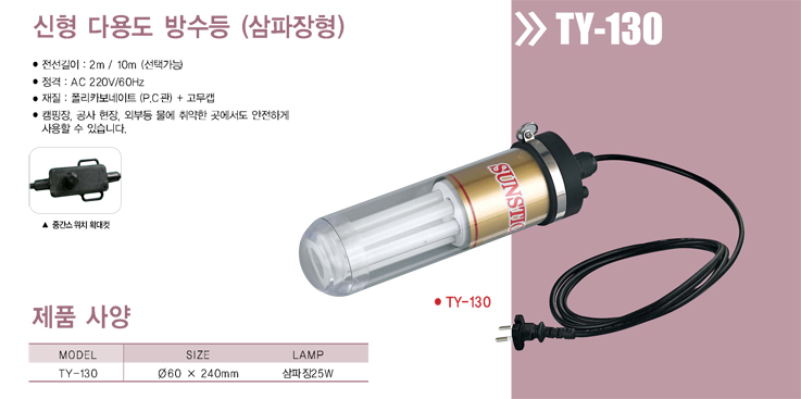 - 방수등의 전선은 모두 우레탄 연질고무로 제작되어 감전 위험이 없습니다.