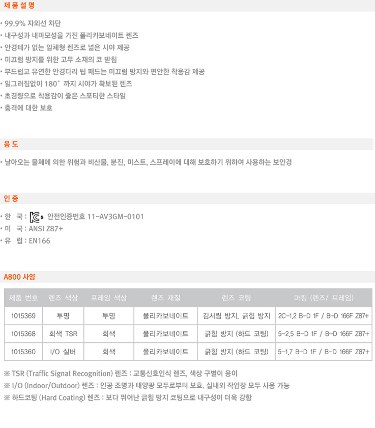 바쿠우달로즈 보안경 A800(1015369)
