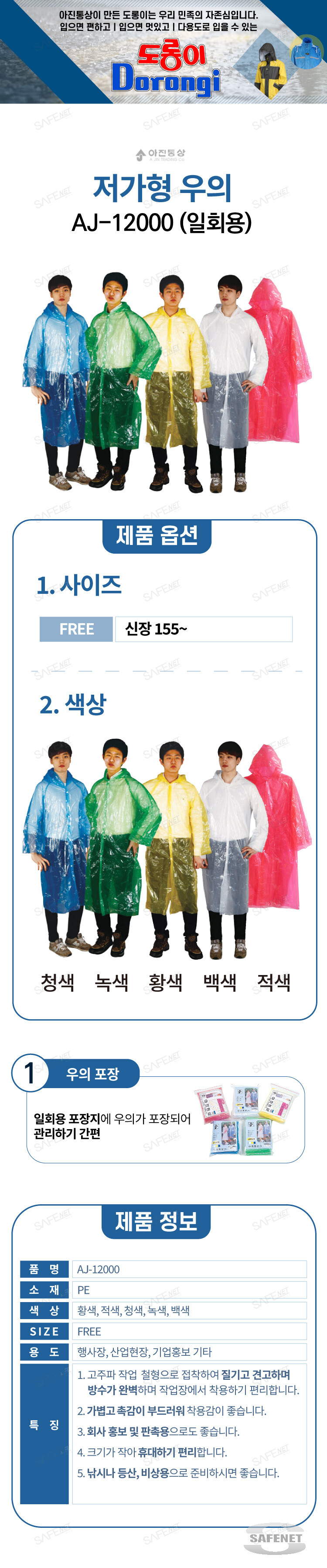 규격 코트식 / 백색,황색,청색,녹색 / FREE SIZE
