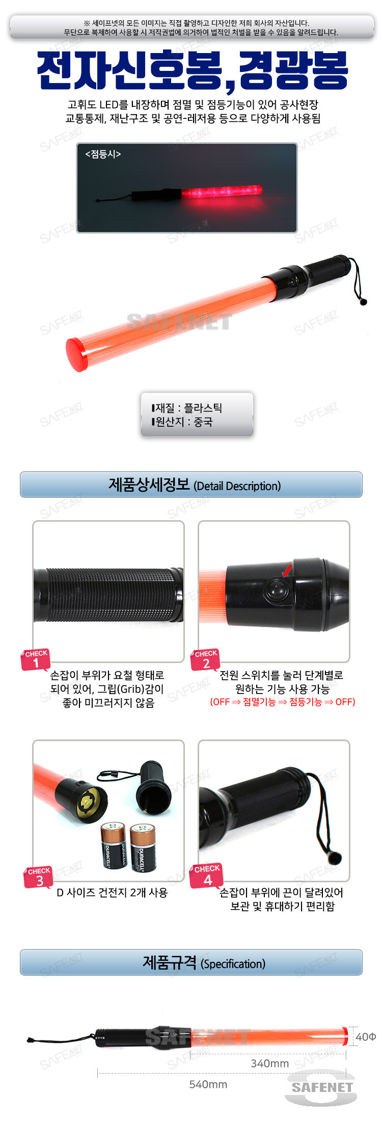 규격 지름40 X 길이540mm, D사이즈 건전지 2EA 사용
