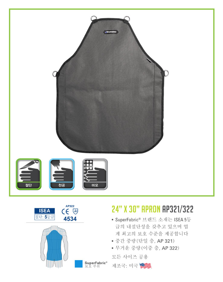 • SuperFabric? 브랜드 소재는 ISEA 5등급의 내절단성을 갖추고 있으며 업계 최고의 보호 수준을 제공합니다