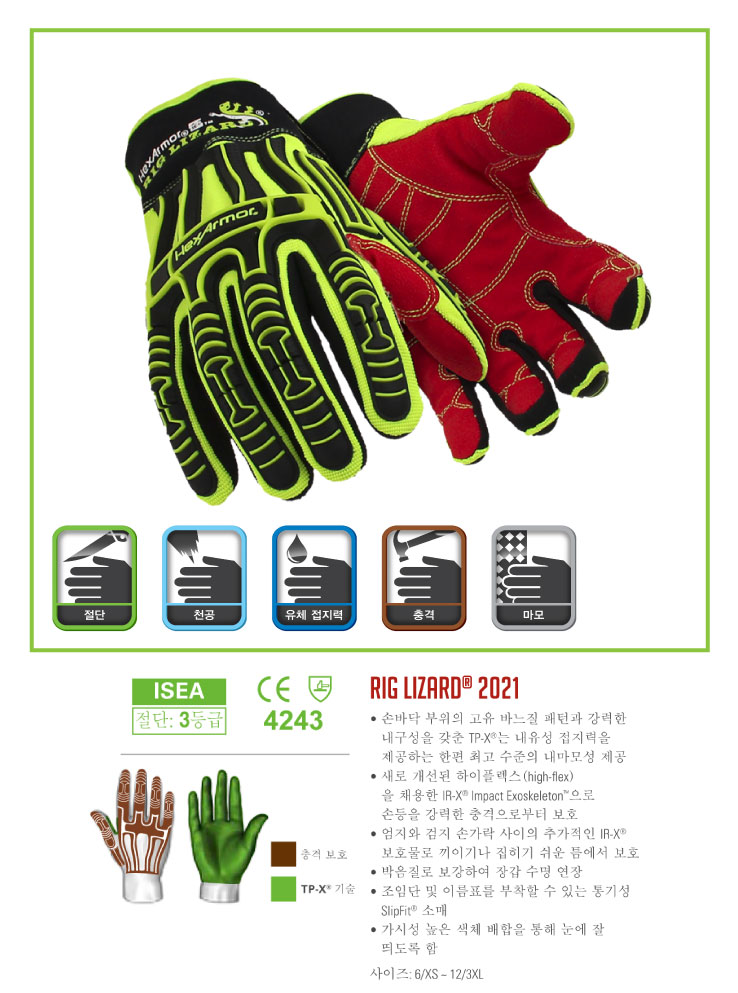 • 새로 개선된 하이플렉스(high-flex)을 채용한 IR-X? Impact Exoskeleton™으로 손등을 강력한 충격으로부터 보호