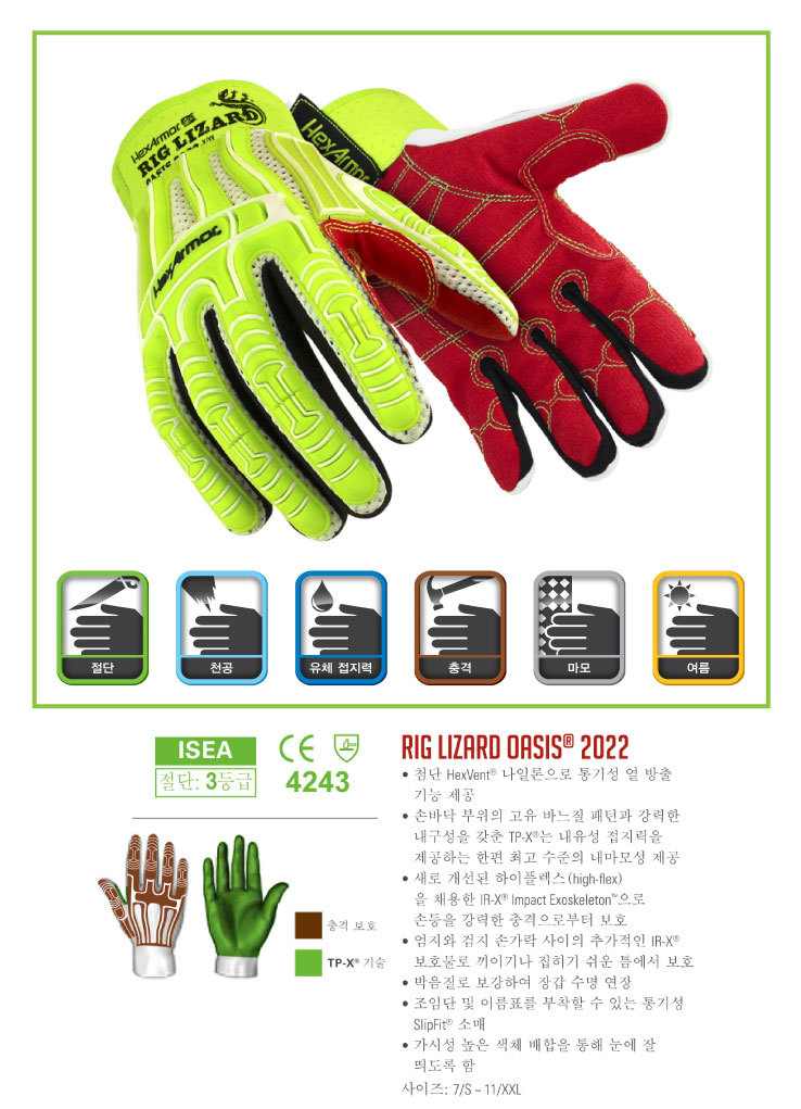 • 새로 개선된 하이플렉스(high-flex)을 채용한 IR-X? Impact Exoskeleton™으로 손등을 강력한 충격으로부터 보호