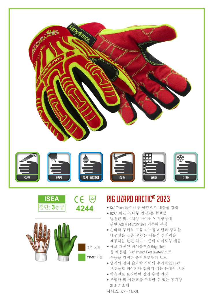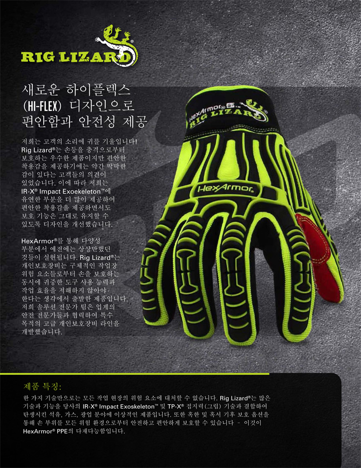 • 새로 개선된 하이플렉스(high-flex)을 채용한 IR-X? Impact Exoskeleton™으로 손등을 강력한 충격으로부터 보호