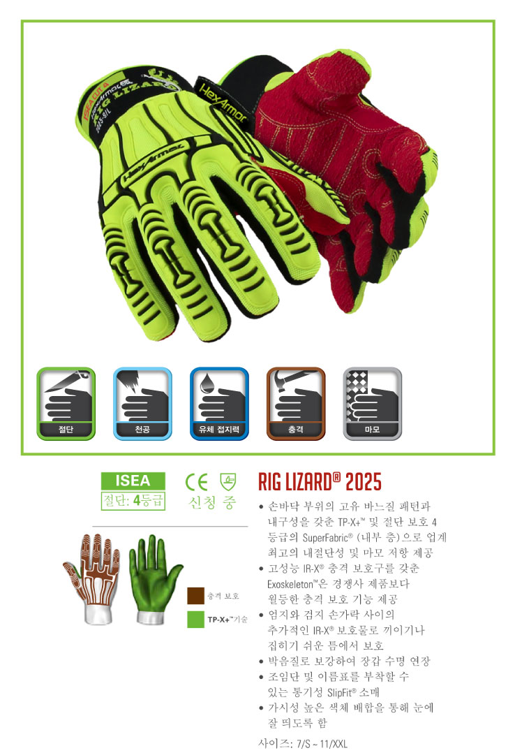 • 손바닥 부위의 고유 바느질 패턴과 내구성을 갖춘 TP-X ™ 및 절단 보호 4등급의 SuperFabric? (내부 층)으로 업계