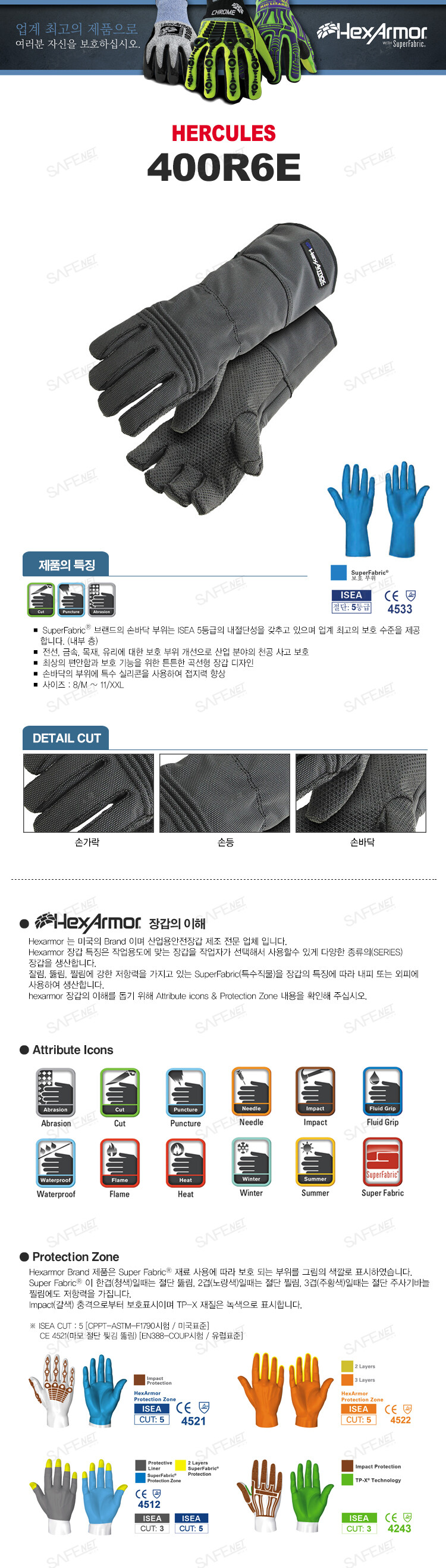 중작업용/절단찢김뚫림방지장갑 HERCULES 400R6E