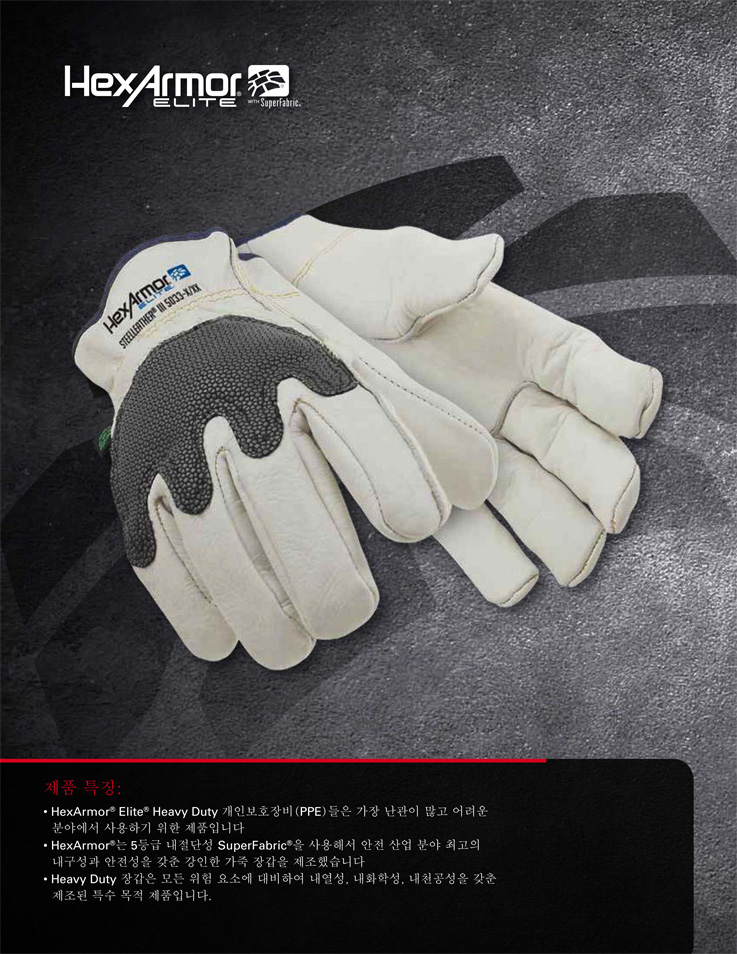 • 일반 이중 손바닥 제품보다 4배 강한 천공 보호 기능(18게이지 바늘을 이용한 개정 ASTM 1342기준)