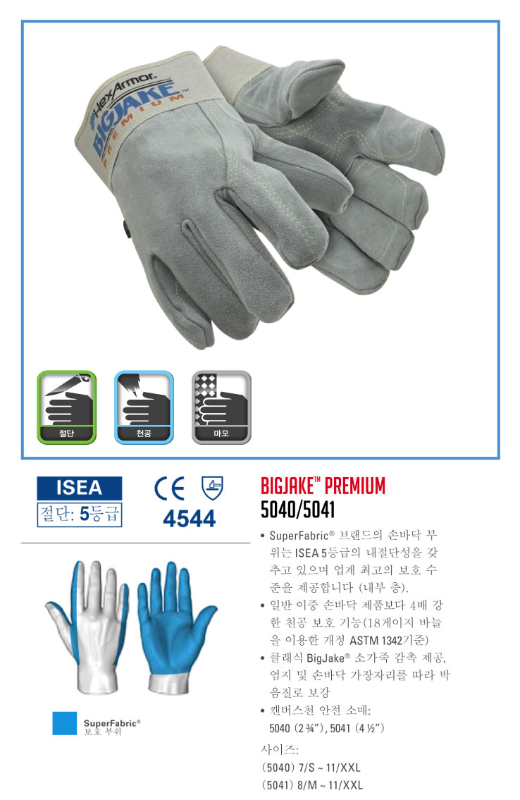 • SuperFabric? 브랜드의 손바닥 부위는 ISEA 5등급의 내절단성을 갖추고 있으며 업계 최고의 보호 수준을 제공합니다 (내부 층).