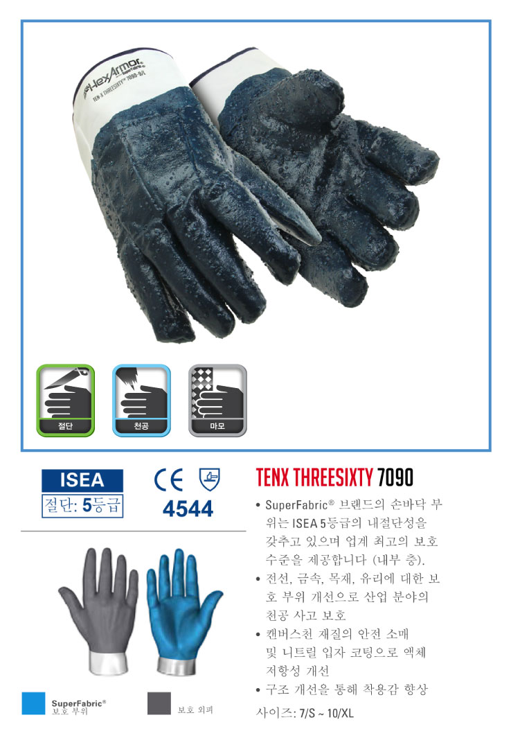 • SuperFabric? 브랜드의 손바닥 부위는 ISEA 5등급의 내절단성을 갖추고 있으며 업계 최고의 보호수준을 제공합니다 (내부 층).