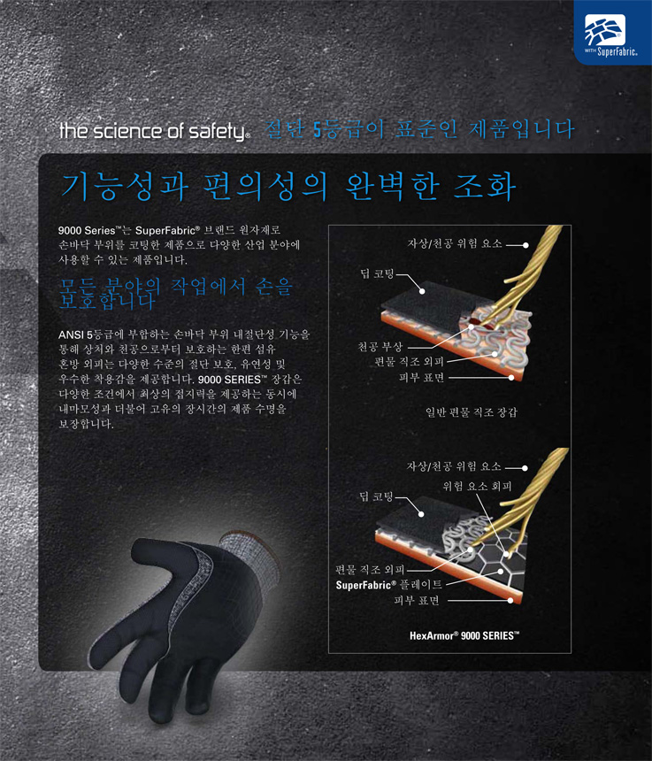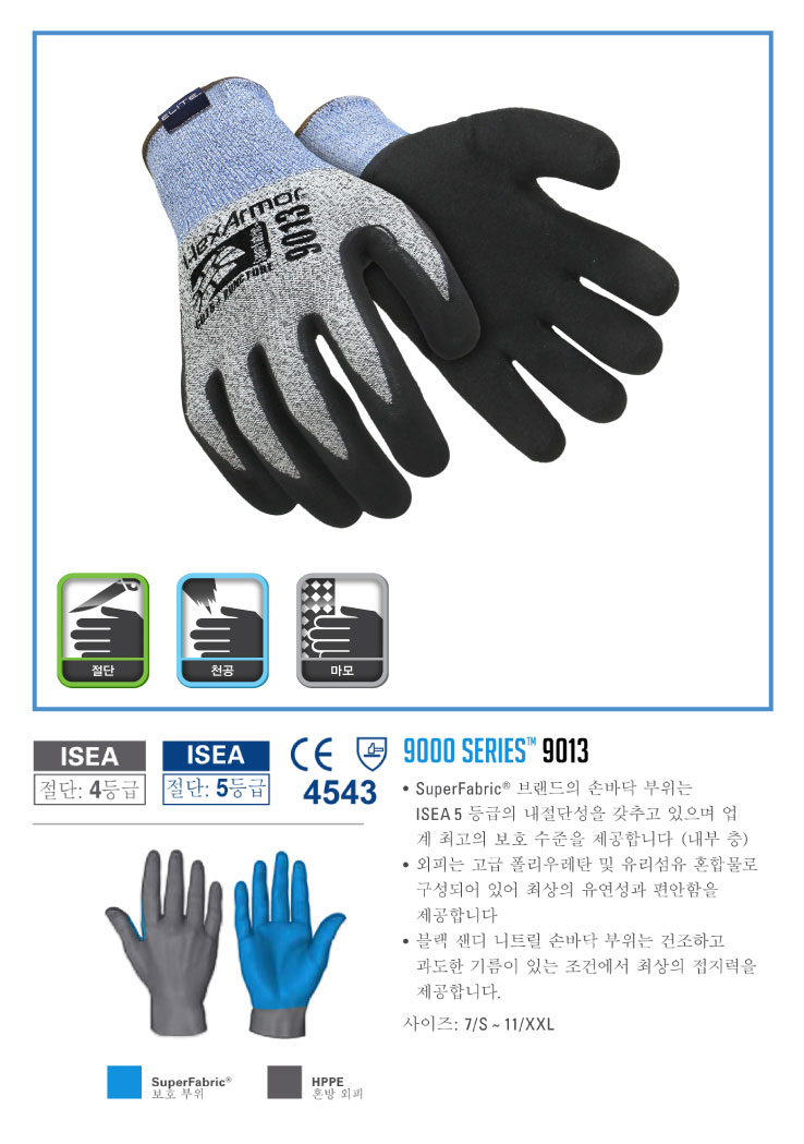 • SuperFabric? 브랜드의 손바닥 부위는 ISEA 5 등급의 내절단성을 갖추고 있으며 업계 최고의 보호 수준을 제공합니다 (내부 층)