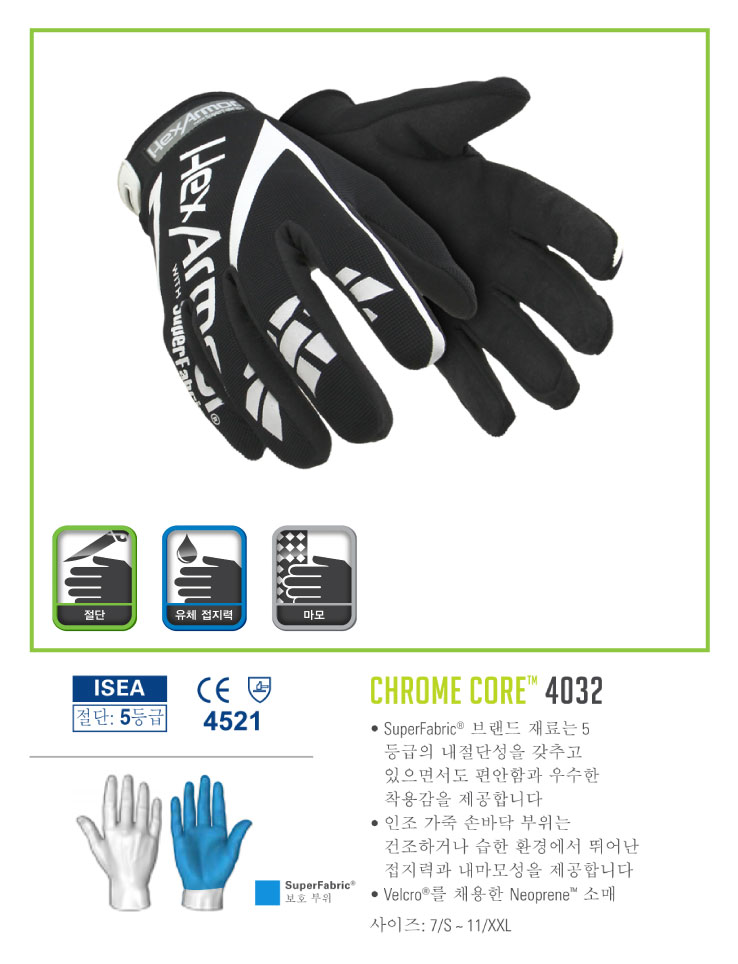 • SuperFabric? 브랜드 재료는 5등급의 내절단성을 갖추고 있으면서도 편안함과 우수한 착용감을 제공합니다