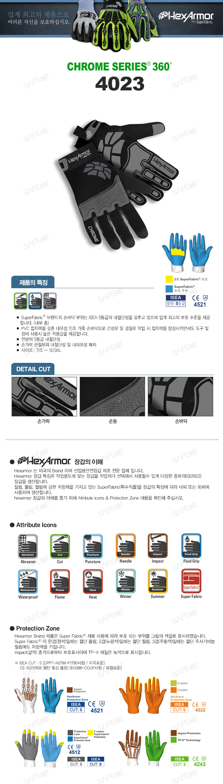 규격 ISEA 절단5등급, CE인증(CE4521)