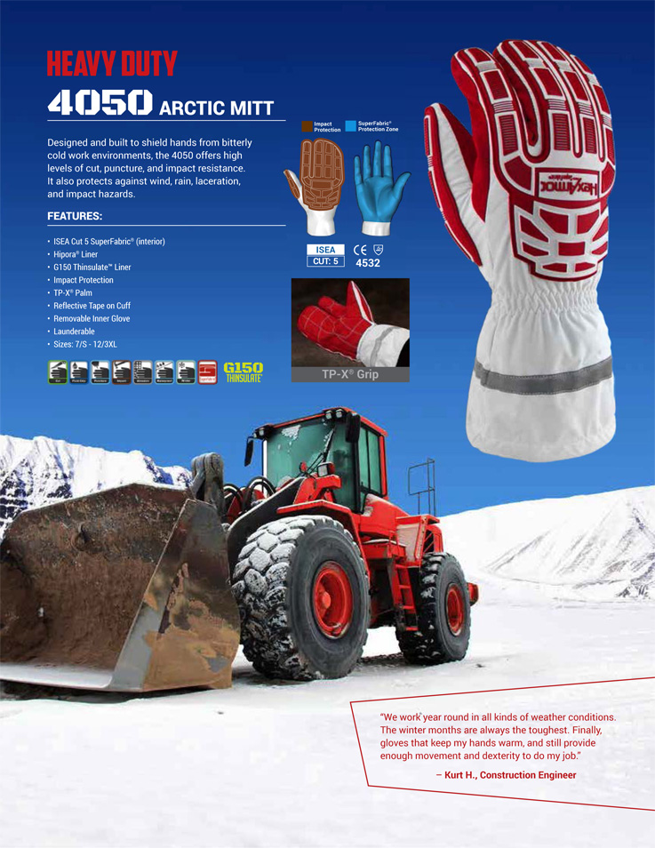 Designed and built to shield hands from bitterly cold work environments, the 4050 offers high levels of cut, puncture, and impact resistance.