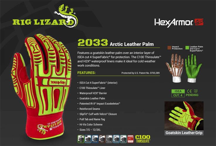 Features a goatskin leather palm over an interior layer of ISEA cut 4 SuperFabric? for protection. The C100 Thinsulate™ and H2X? waterproof liners make it ideal for cold weather work conditions.
