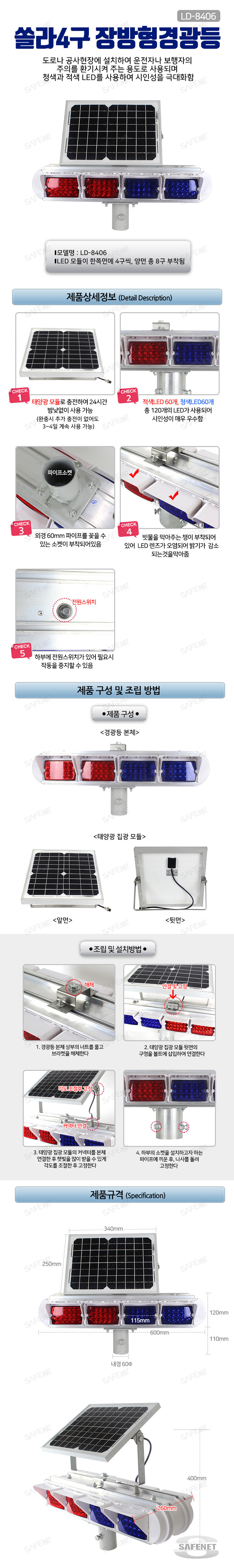 쏠라미니장방형경광등 (단면4구/양면8구) LD-8406