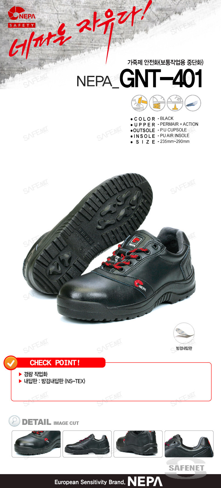 규격 4인치 / 끈타입 / 방검내답판 / 경량작업화 / 235~290mm