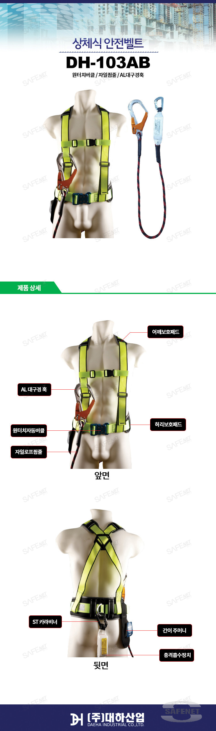 크로마 원터치버클형 상체식안전벨트 DH-103AB (자일죔줄/AL대구경훅)