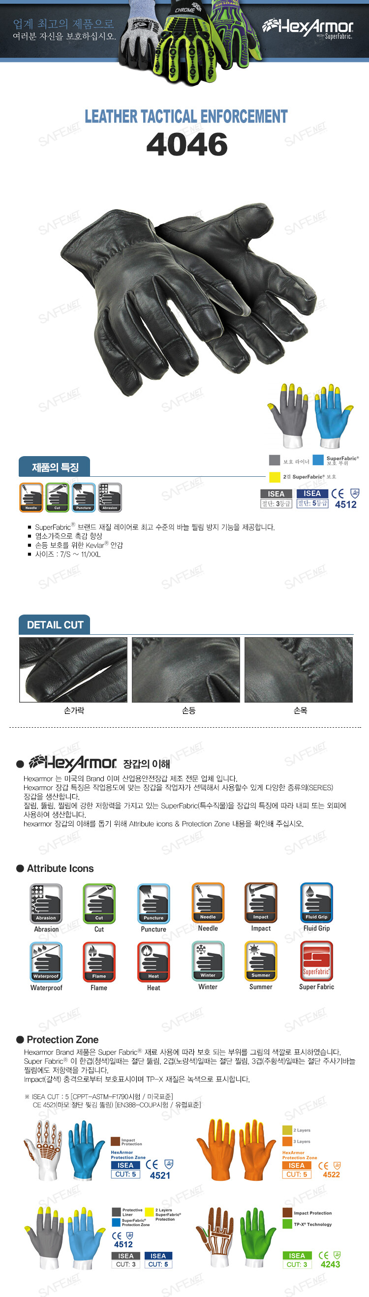 규격 ISEA 절단3등급, CE인증(CE4512)